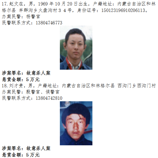 最高五万!呼和浩特警方公开悬赏缉捕19名在逃人员社会